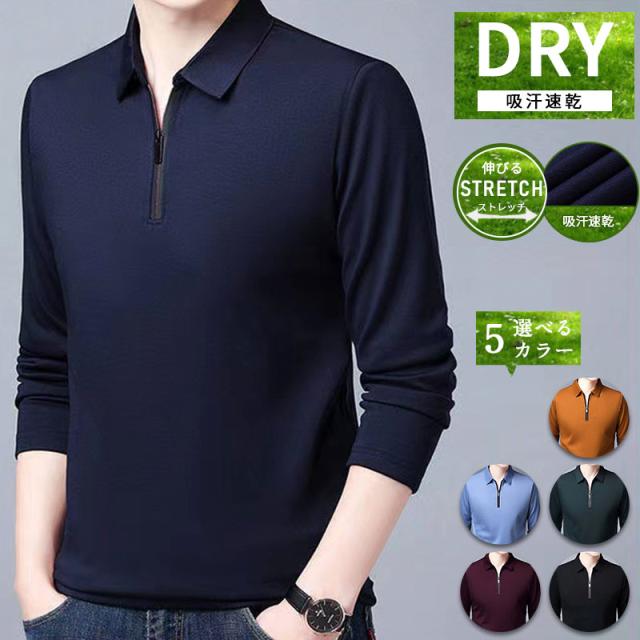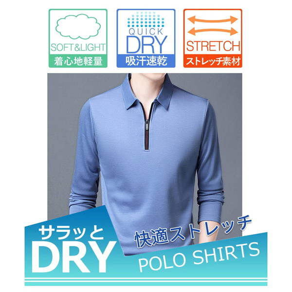 ポイント超超祭 ポロシャツ 長袖 作業服 吸汗速乾 長袖 ZIPポロシャツ メンズ 作業着 夏用 冷感 接触冷感 吸水速乾 スポーツ 涼しい ドライ 冷感プリント