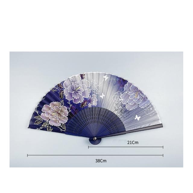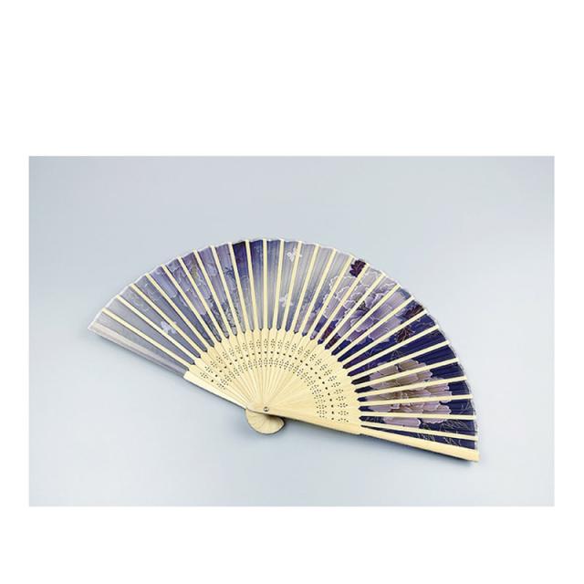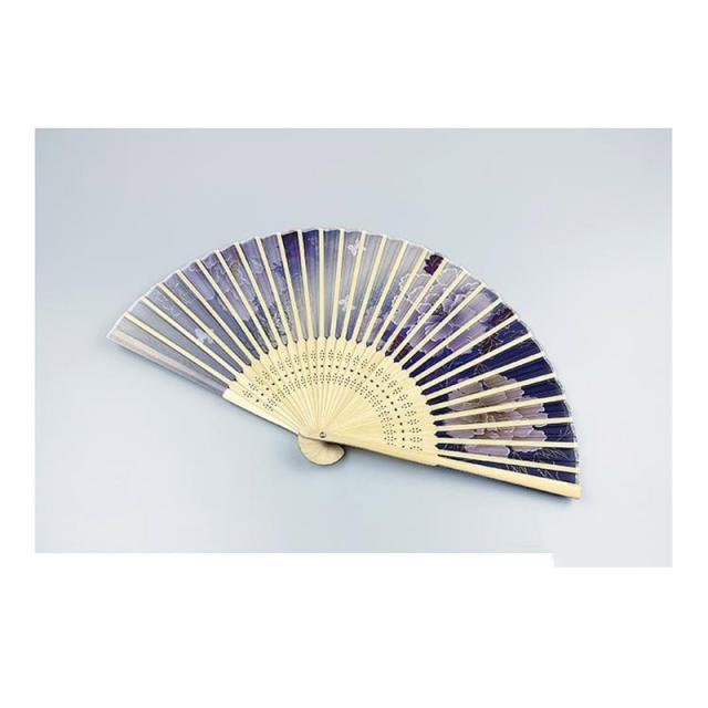 末広がりの形から、縁起物の扇子。牡丹の花言葉は、風格・富貴・・藍色のグラデーションの扇面に大輪の牡丹が三輪描かれています。ゴールドとシルバーで縁どられ、落ち着いた色合いの中に華やかさもある扇子です。