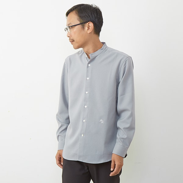 [型番:A0433FB 213] ウールライクファブリック”LANATEC”を使ったスタンダードバンドカラーシャツです。