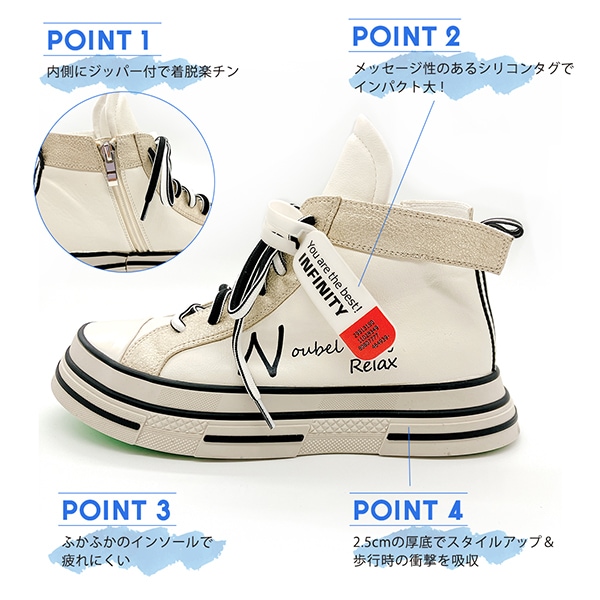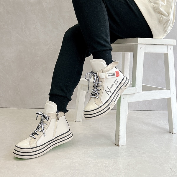 厚底/軽量/履きやすい/着脱が簡単/サイドファスナー/ハイカットスニーカー/スポーティ/カジュアル/かわいい/エッジライン/スタイリッシュ/カジュアル/通勤/通学/旅行/リゾート