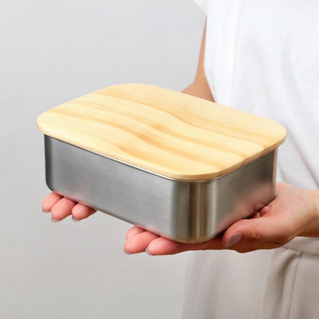 ステンレスと木製蓋の雰囲気がマッチするお弁当箱 1030ml