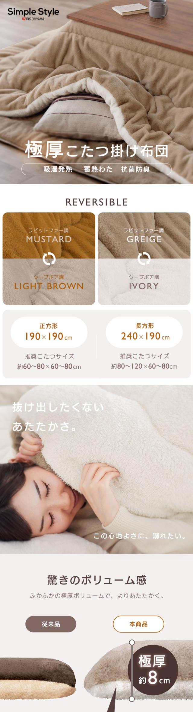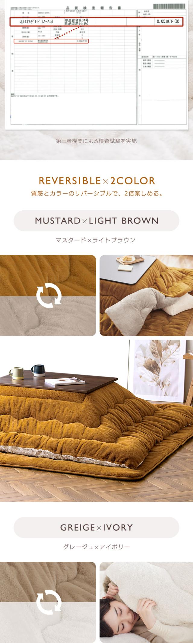 こたつ掛け布団 KKB-R1919 マスタード/ライトブラウン グレージュ/アイボリー 全4色 こたつ掛け布団 こたつ 掛布団 正方形 コタツ 炬燵 布団 ふとん リバーシブル 暖かい ラビットファー調 シープボア調 アイリスオーヤマ 送料無料