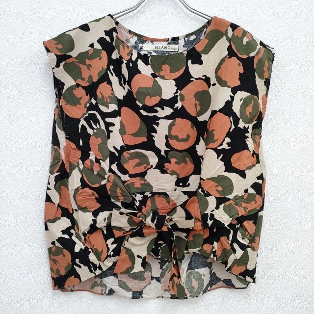 blanc basque 総柄 デザインブラウス サイズ38 ノースリーブ ブラウス シャツ ブラック オレンジ レディース ブランバスク【中古】3-0726S♪