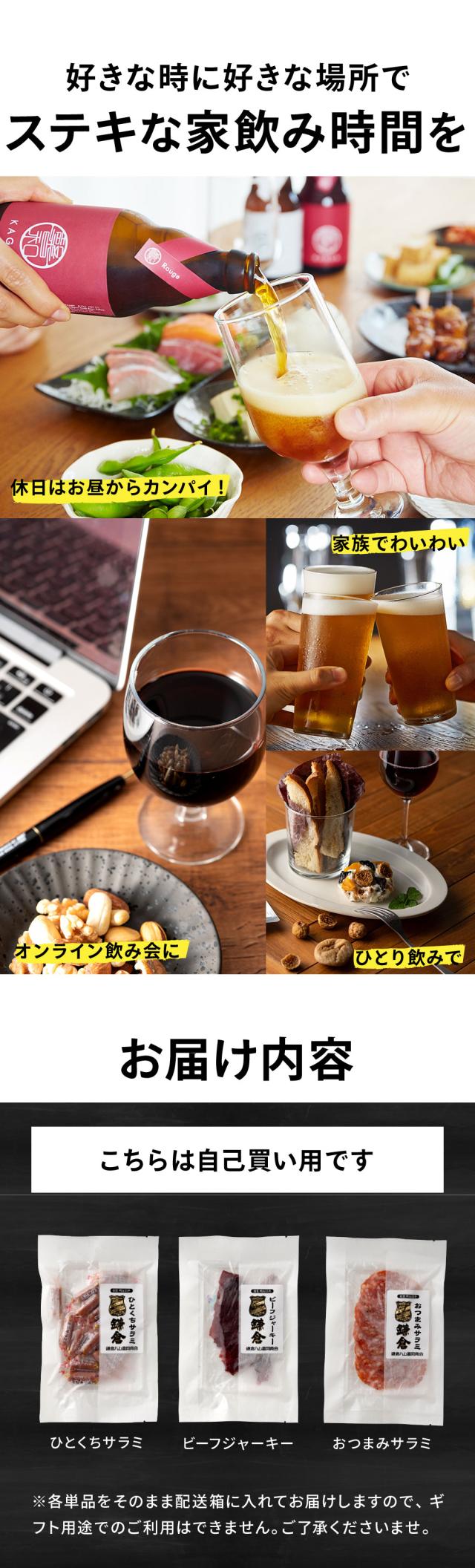 ●内容量:おつまみ3点(ひとくちサラミ×1・ビーフジャーキー×1・おつまみサラミ×1)