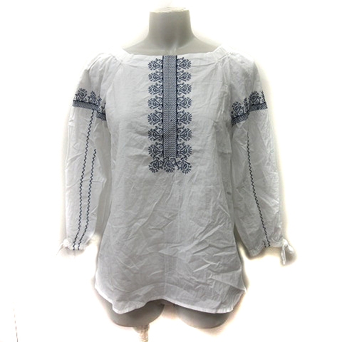 【中古】ナチュラルビューティーベーシック シャツ ブラウス 七分袖 刺繍 M 白 ホワイト /YI レディース