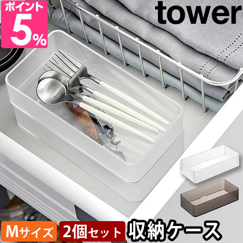 tower(タワー) 底がクリア 縦横重ねられる引き出し整理収納ケース M 2個組