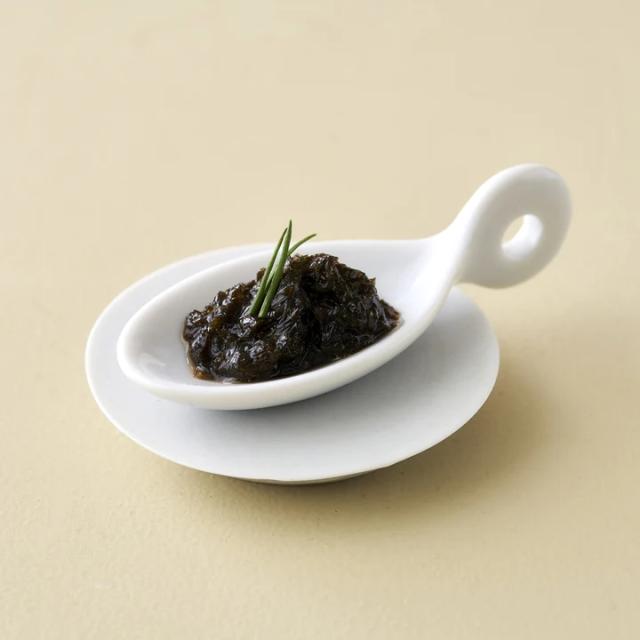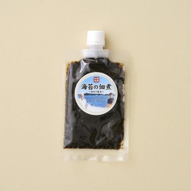 松島湾で摘んだ生海苔をそのまま煮込み、12時間じっくり熟成しました。荒切りにする事で磯の風味と食感を大事にしています。こだわりの甘めの味付けです。