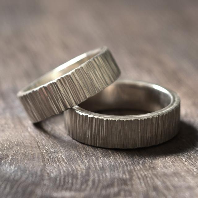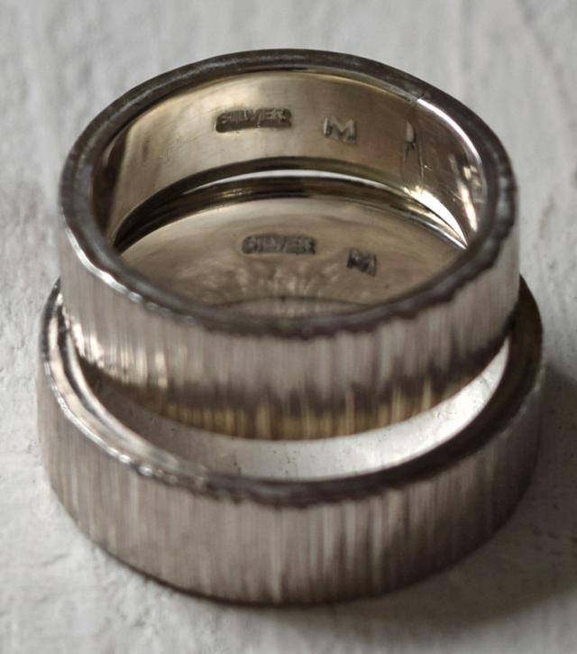 シグれのリング 中 2本セット メンズ レディース ハンドメイド オーダー シルバー 槌目 シンプル 上品 おしゃれ 指輪 Silver 950 ごつめ ゴツめ マモる 手作り 手づくり ダイヤモンド tkr011pair