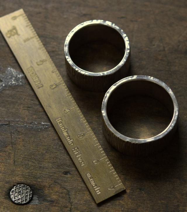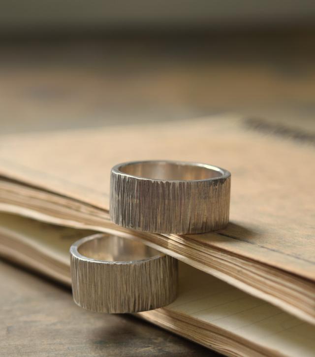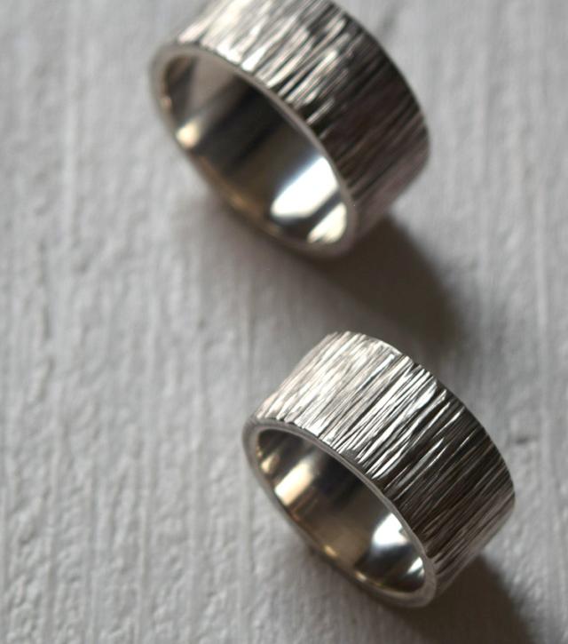 シグれのペアリング(太) メンズ レディース ハンドメイド オーダー シルバー 槌目 シンプル 上品 おしゃれ 指輪 Silver 950 ごつめ ゴツめ マモる 手作り 手づくり(tkr012pair)