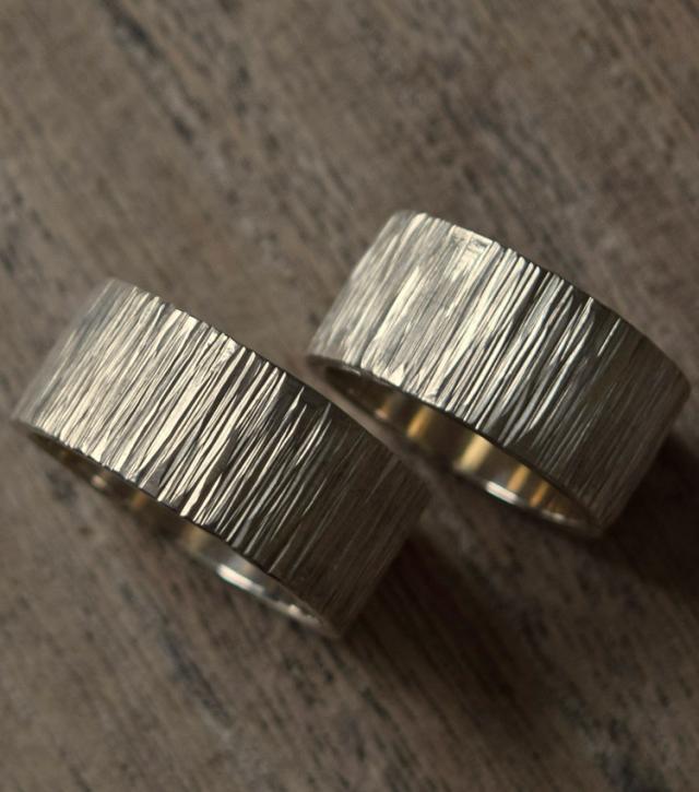シグれのペアリング 太 2本セット メンズ レディース ハンドメイド オーダー シルバー 槌目 シンプル 上品 おしゃれ 指輪 Silver 950 ごつめ ゴツめ マモる 手作り 手づくり tkr012pair