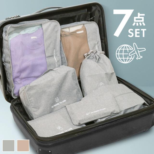 トラベルポーチ 7点セット IS-TVP7-BE グレー ベージュ 全2色 トラベルポーチ 旅行用 収納袋セット パッキング ポーチ シューズケース 旅行ポーチ 衣類 収納 出張 便利グッズ 送料無料