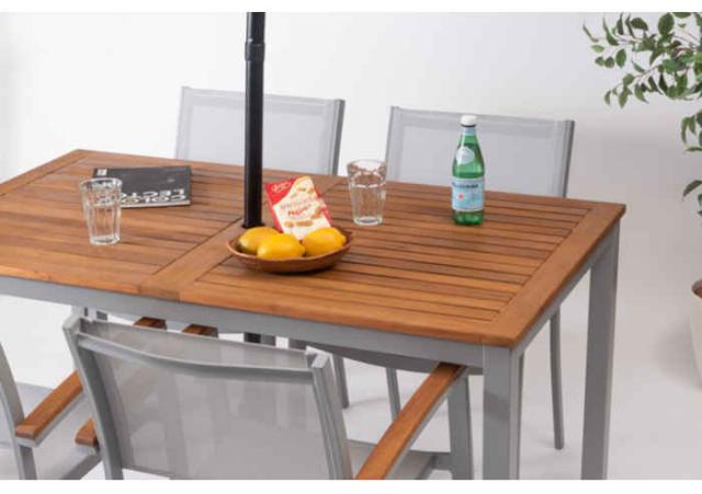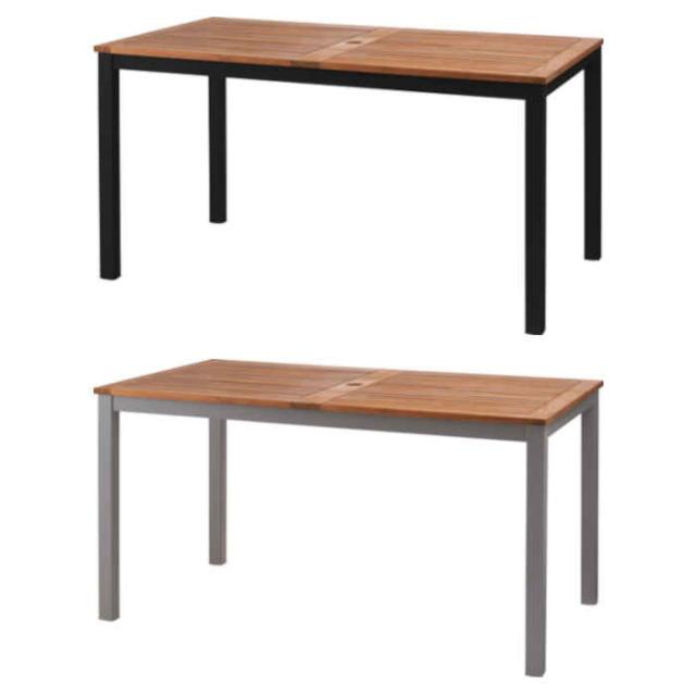 木製 天然木 アルミ パラソルホール付き W140×D80×H74cm テーブル ガーデンテーブル ガーデン用 ガーデン ガーデン家具 ガーデンファニチャー ガーデニングファニチャー アウトドアテーブル 庭 ベランダ バルコニー テラス サンルーム エクステリア 外構 店 店舗 ショップ レストラン カフェ おうちカフェ オープンカフェ アウトドア バーベキュー BBQ パーティー くつろぎ 寛ぎ 癒し おしゃれ オシャレ お洒落