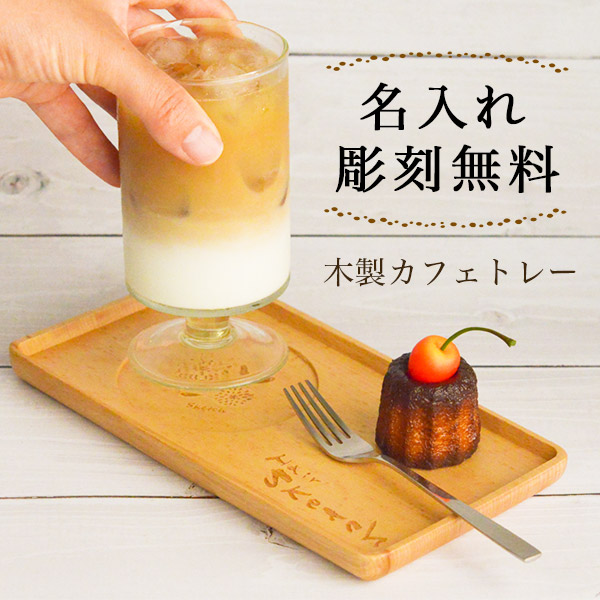 お飲み物とお菓子を添えて・・・お客様のおもてなし用に、自宅でのカフェタイム用に、気軽に使えるカフェトレー。お好きな位置にロゴや名前を彫刻できる、無料彫刻サービス付きです。記念品や店舗用としておまとめのご注文も承っておりますのでお問い合わせ下さいませ。