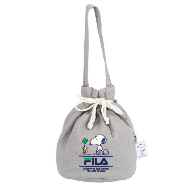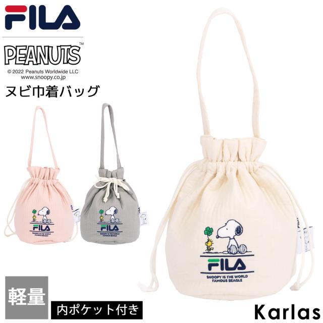 【値下げ】FILA フィラ SNOOPY スヌーピー 巾着バッグ レディース 内ポケット 軽い 巾着袋 ヌビバッグ キルティング ミニトート PEANUTS コラボ グッズ karlas