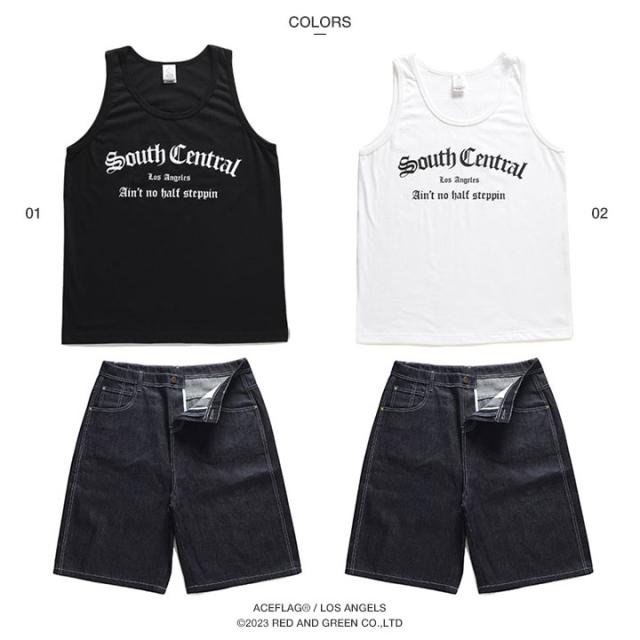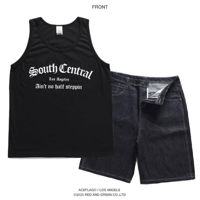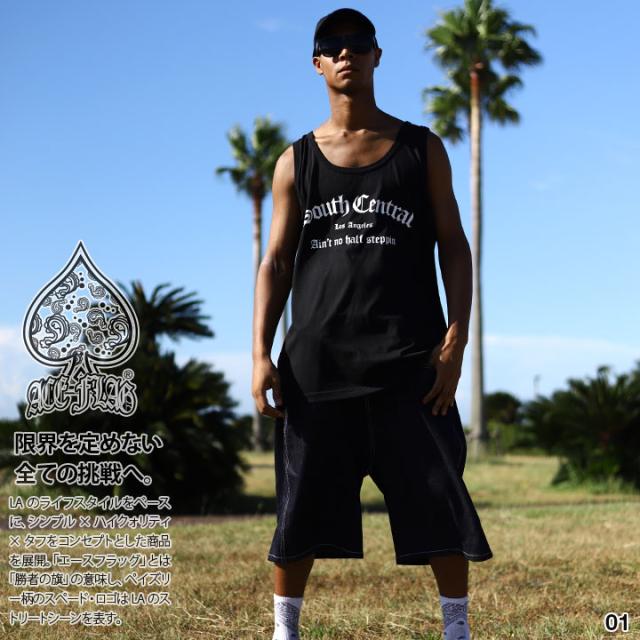 ACE FLAG 上下セット ノースリーブ ブランド デニム ハーフパンツ コメンズ 黒/白 大きいサイズ エースフラッグ セットアップ South Central サウスセントラル b系 ストリート系 ハイ 夏 新作 AF-SE-TK-023