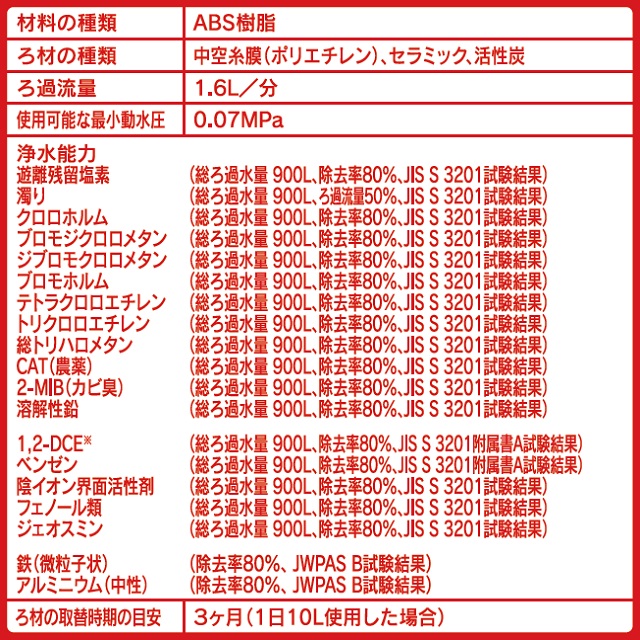 ■【業界トップクラスの浄水能力】活性炭・セラミック+イオン交換繊維・中空糸膜フィルターを組み合わせたクリンスイ独自の高性能カートリッジが、家庭用品品質表示法に定められた除去対象物質(17物質)と浄水器協会で定められた除去対象物質(2物質)を高度除去します。