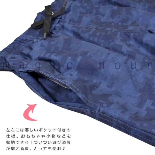 海水浴、プールやアウトドアに使える子どもサイズのお洒落なサーフパンツ♪ ポケット付き・ウエスト調節紐・インナーサポーター内臓で機能性も◎ さらっとした手触りの良い柔らかな速乾素材で動きやすくべたつかず快適に過ごせる! 脱げにくく動きやすいウエストゴム仕様で思いっきり遊べます! |