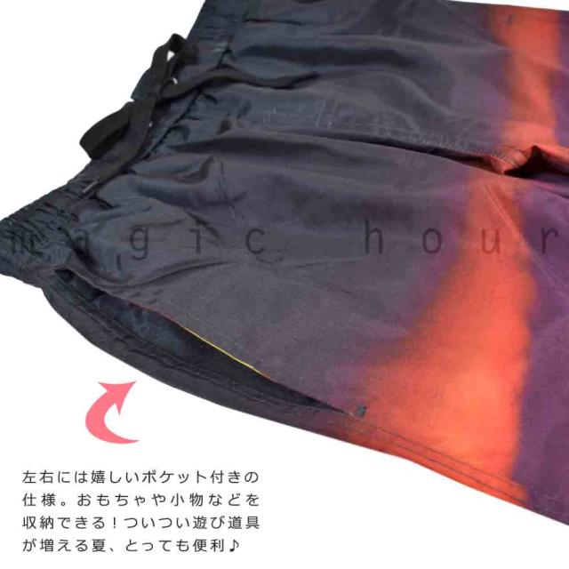 海水浴、プールやアウトドアに使える子どもサイズのお洒落なサーフパンツ♪ ポケット付き・ウエスト調節紐・インナーサポーター内臓で機能性も◎ さらっとした手触りの良い柔らかな速乾素材で動きやすくべたつかず快適に過ごせる! 脱げにくく動きやすいウエストゴム仕様で思いっきり遊べます! |