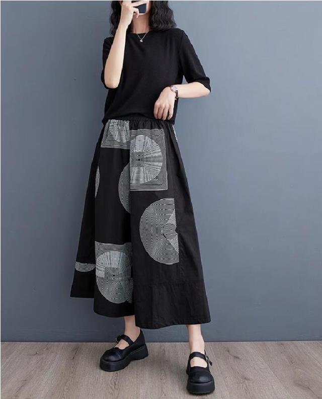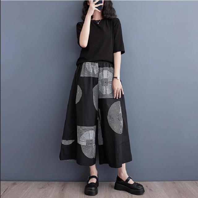 ガウチョパンツ 夏服 レディース プリント 人気ワイドパンツ 大きいサイズ ガウチョパンツ さり気ないオシャレ見え オススメ