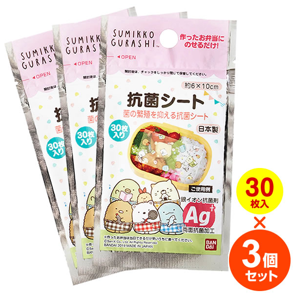 【メール便 1000円ポッキリ 送料無料】すみっコぐらし 抗菌シート 30枚入×3個セット | 子ども 弁当 抗菌シート 銀イオン Ag+ 使い捨て 菌 抑制 日本製 キャラ弁 キャラクター柄 かわいい 遠足 デコ弁