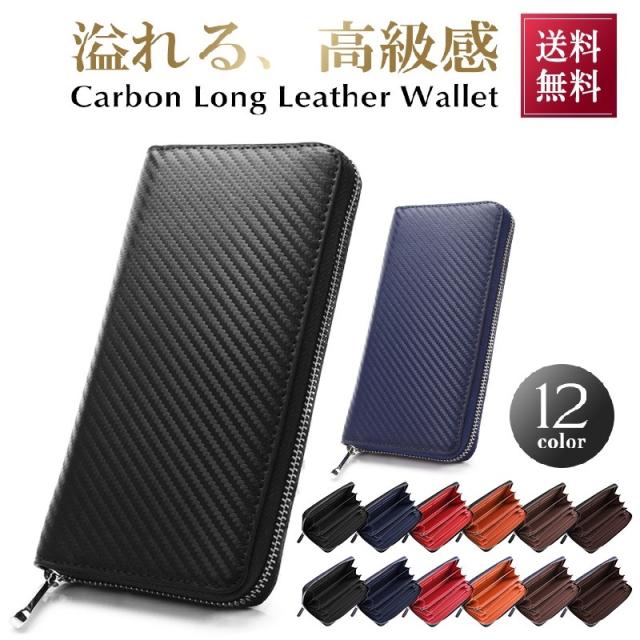 チャック カーボンレザー ラウンドファスナー 送料無料 長 メンズ財布
