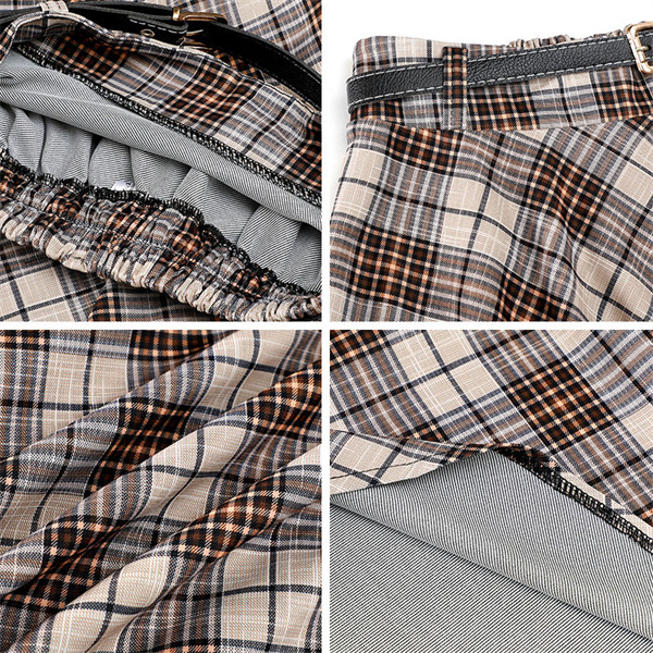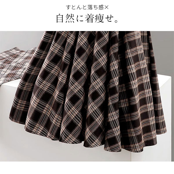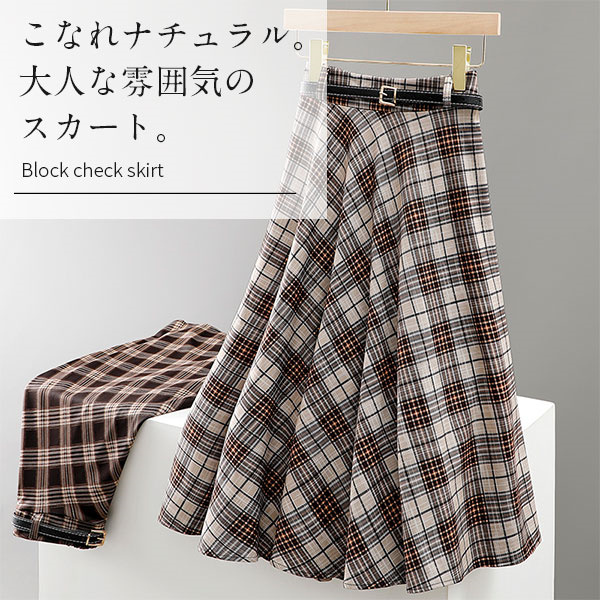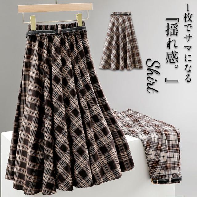 ポイント超超祭 ベルト付き チェックスカート ロング タータンチェック フレアスカート チェック 春 夏 秋 ロング丈 ミモレ丈 Aライン 体型カバー 大きめ