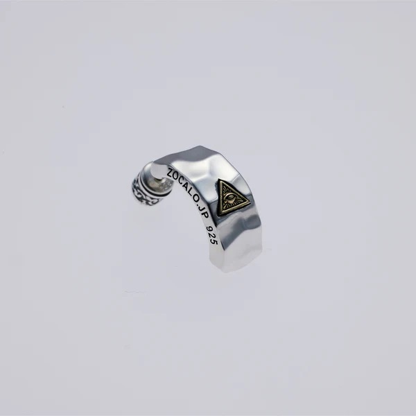 ZOCALO ソカロ HAMMERED TEXTURE HOOP EARRING (EYE OF PROVIDENCE) 槌目フープピアス (アイ・オブ・プロビデンス) 片方売り ZES-0034 シルバー 槌目 メンズ レディース