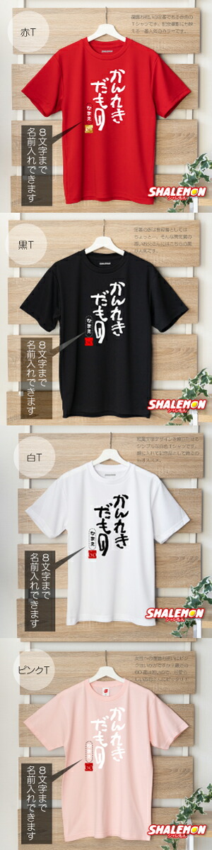 名前の文字は赤・黒・ピンクTシャツをご選択の場合は白文字、白Tシャツをご選択の場合は黒でプリントします。