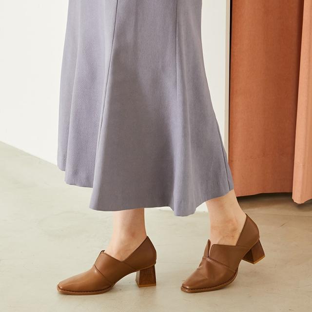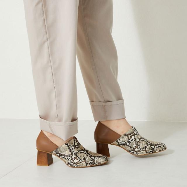 ウッドヒールでシックな雰囲気を演出しつつ、太めのミドルヒールで歩きやすい。
