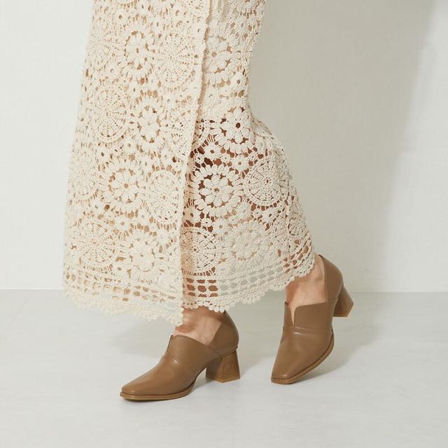 履き口に施したスリットとアッパー部分の切替が足元をすっきりと見せてくれるパンプス。