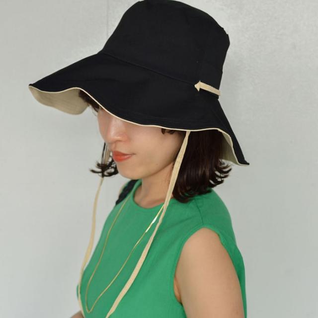 ナチュラルな生地のつば広デザインはカジュアルにもエレガントにも使える。