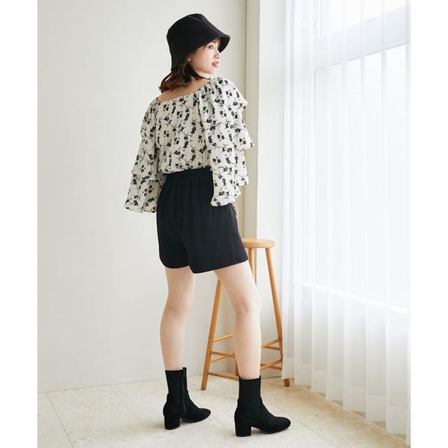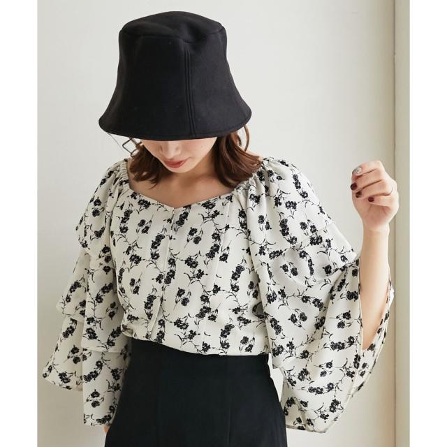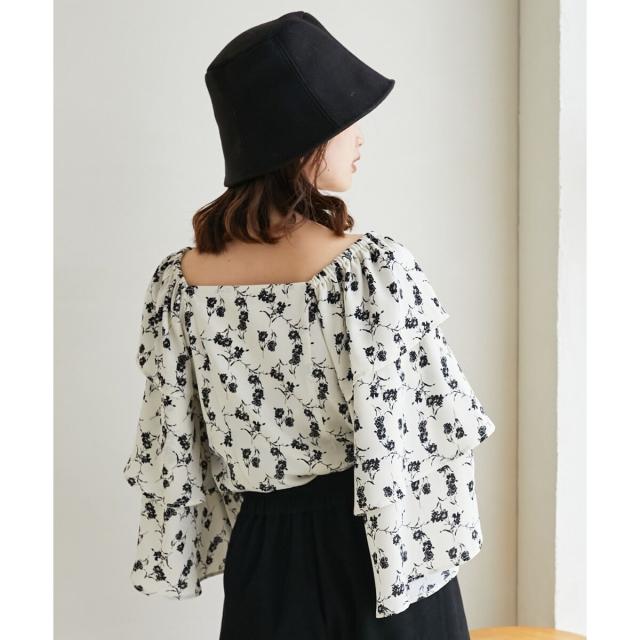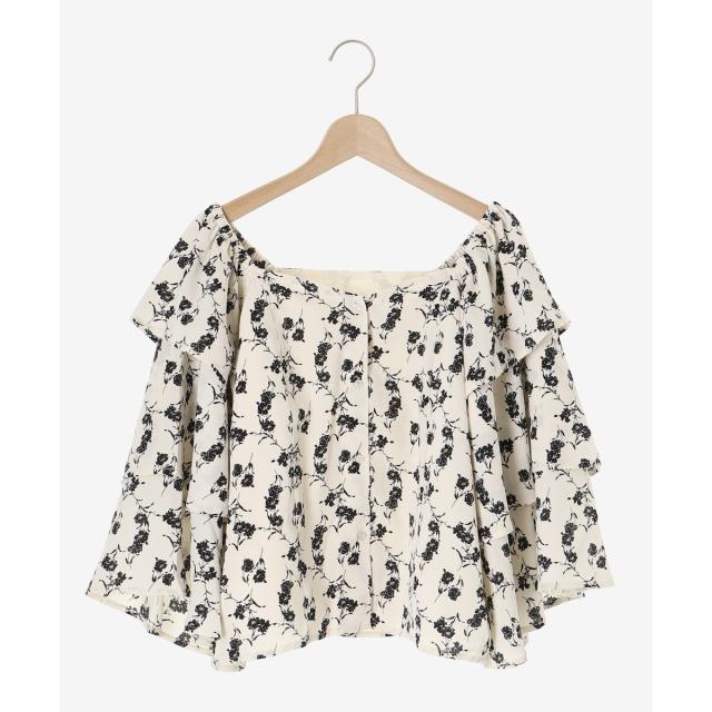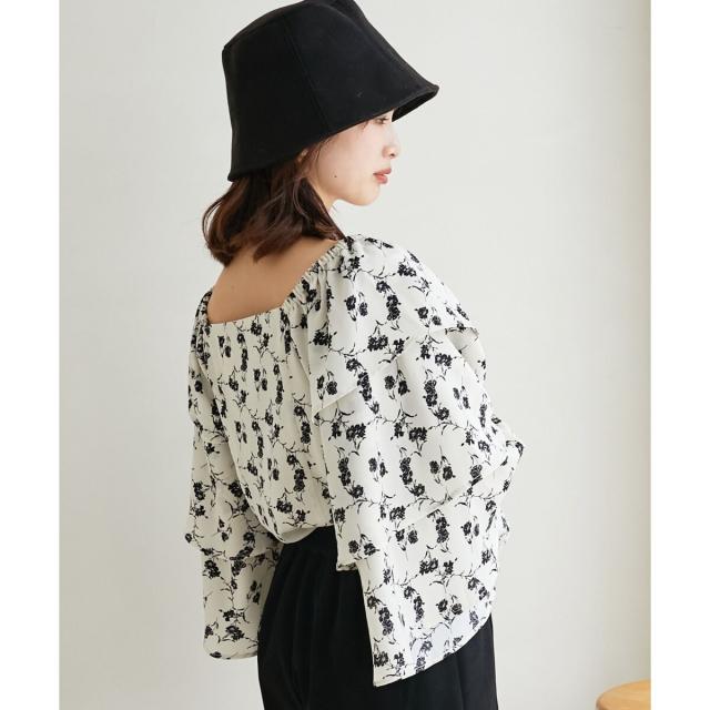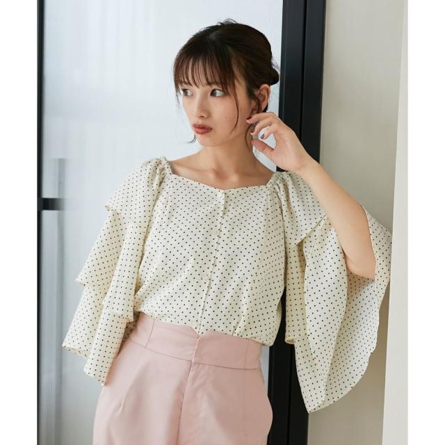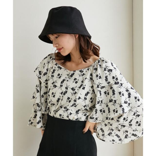フレアー袖にたっぷりのフリルをデザインした華やかブラウス。