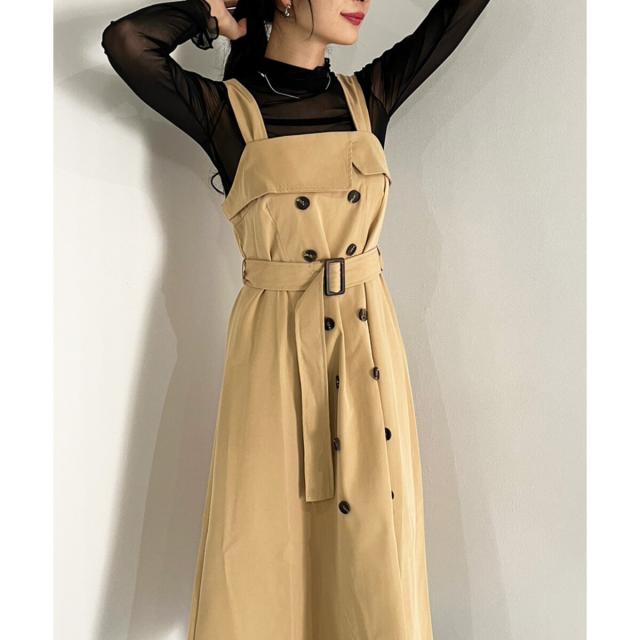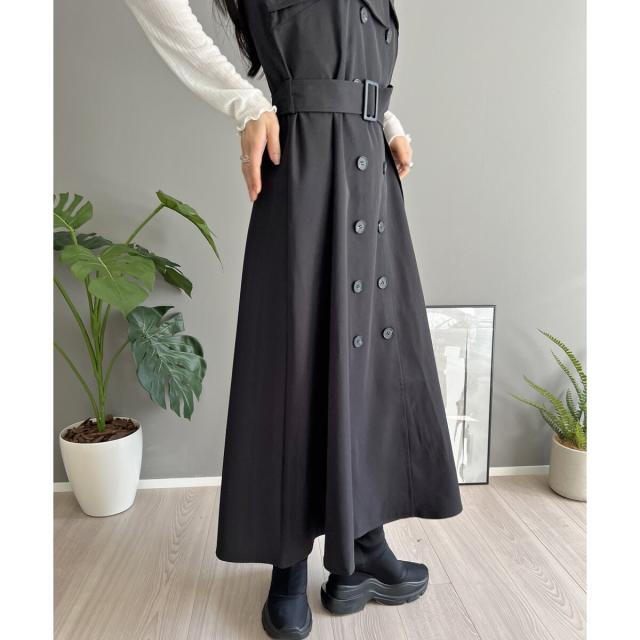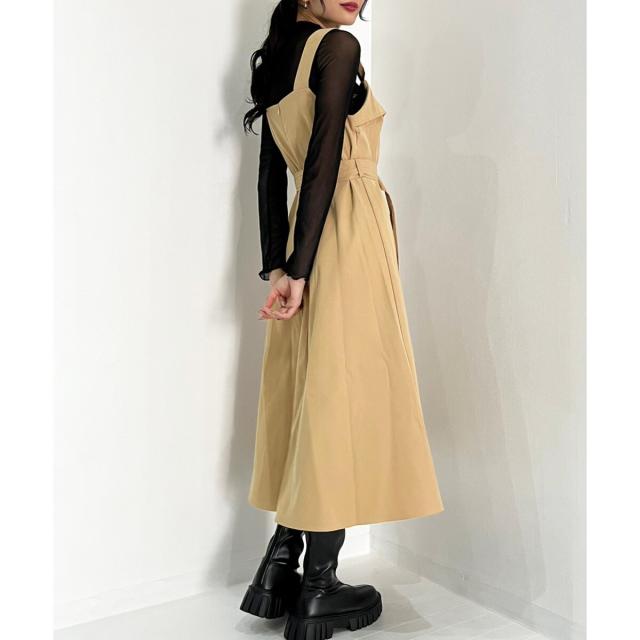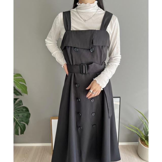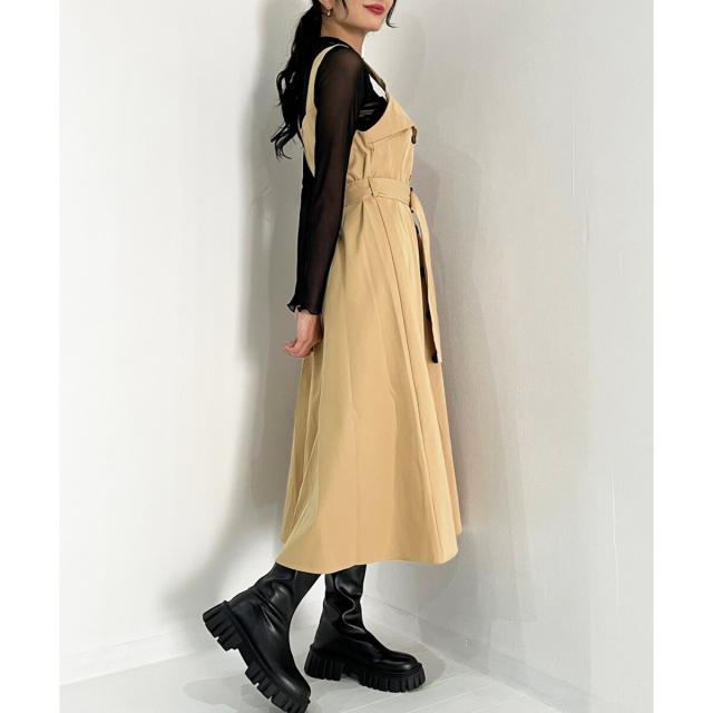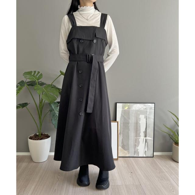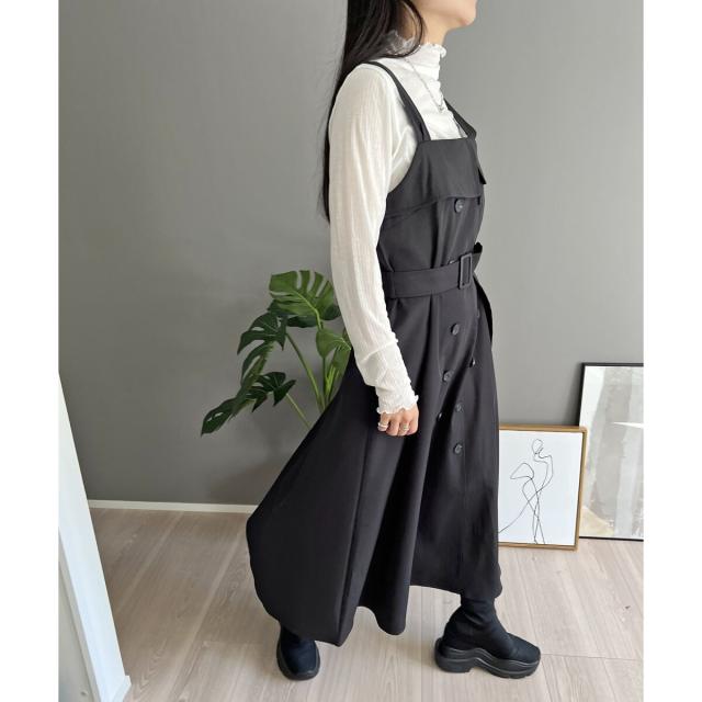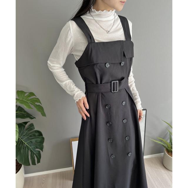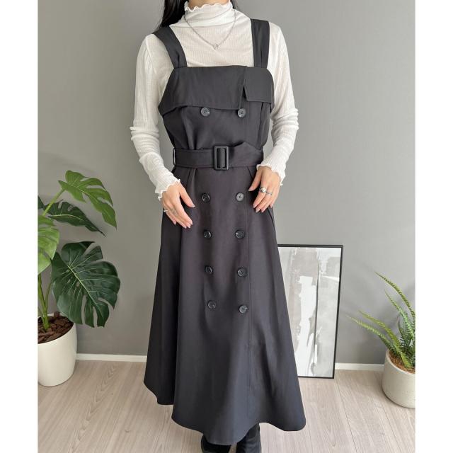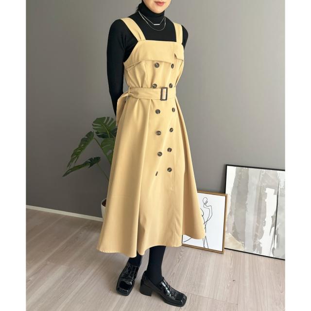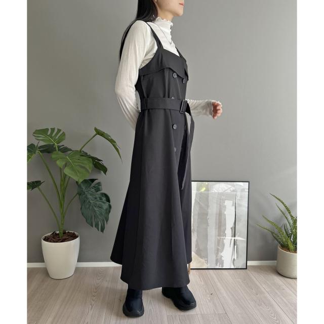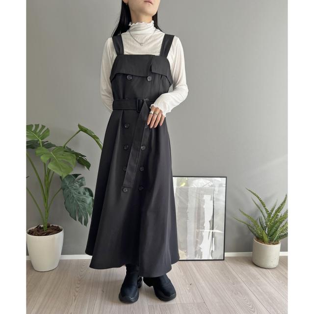 トレンチのデザインをジャンパースカートに落とし込んだ雰囲気のある一枚です。