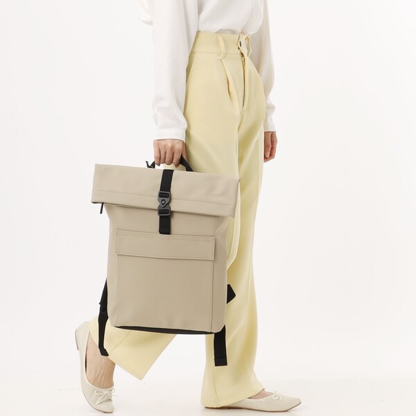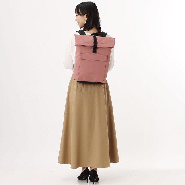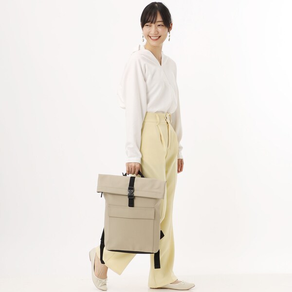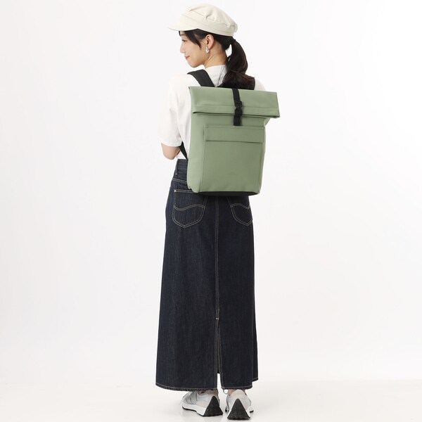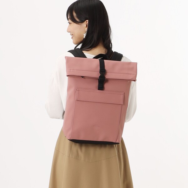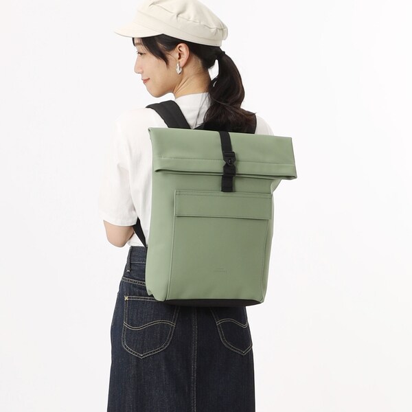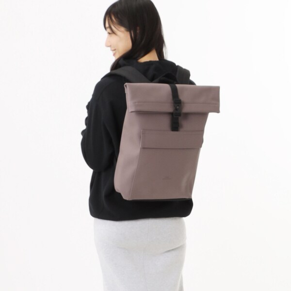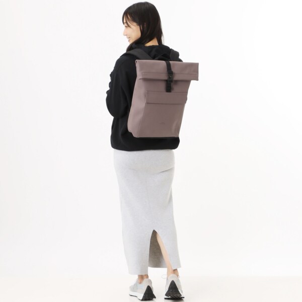 ドイツ発のバッグ。サステナブルな考え方を融合させたブランドでいつまでも長く使えるミニマルデザイン。ミニマリストのためのデイパック。トップの開閉部分は、ベルトの長さを変えることが出来るので容量に応じて調節が可能。ショルダーストラップも長さの調節が可能。パッド入りなので体にもフィットします。背面側にも内部にアクセス可能なファスナーが付いているので、荷物の取り出しも簡単。自転車での移動、ショッピング、ナイトライフなど、嵩張りたくないお出かけにフィットするのがこのデイパック。