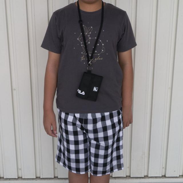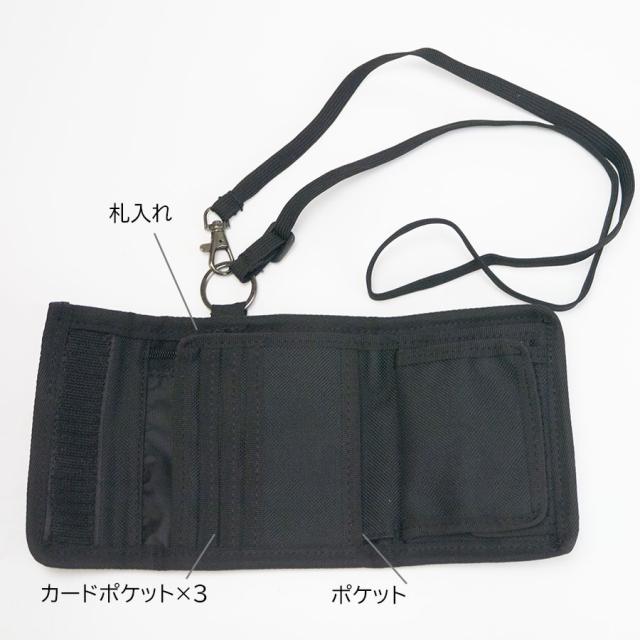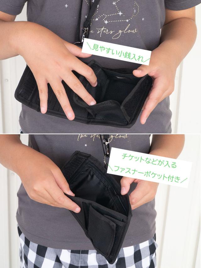 ■マジック式開閉の2つ折り財布です。首から下げられるストラップがついたお財布を持ち慣れないお子様の修学旅行などにおすすめのスタイルです。
