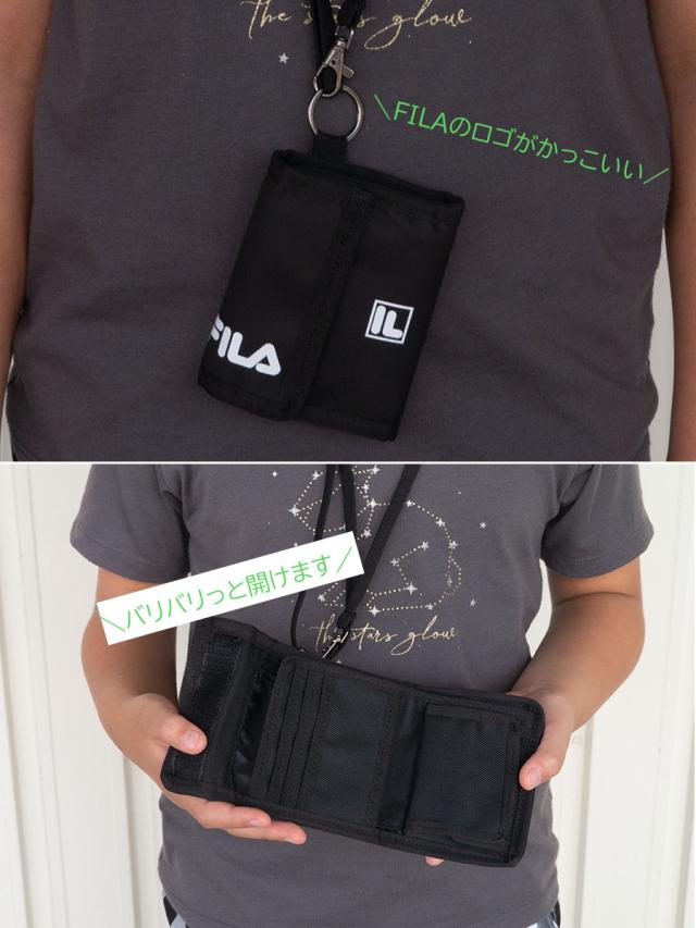 財布 二つ折り 男の子 女の子 2つ折り財布 ジュニア キッズ財布 マジックテープ 小学生 修学旅行 中学生 子供用入学 祝 財布 紐付き FILA フィラ ネックストラップ付 小銭入れ カード お札 修学旅行 FIS-0591