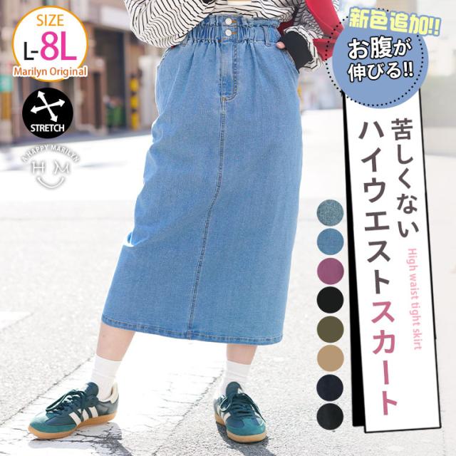 新作 大きいサイズ レディース スカート | 新色追加!! ハイウエストなのに苦しくない! ウエストギャザーでお腹スッキリ タイトスカート [448096] LL 3L 4L 5L 6L 7L 8L