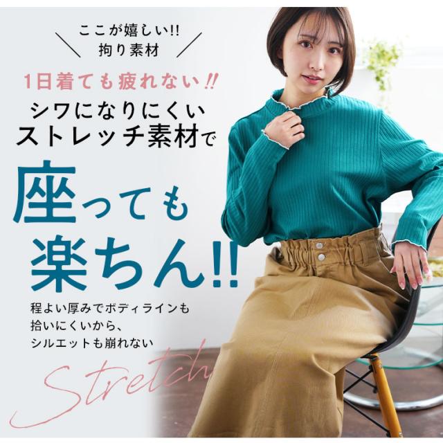 ハイウエストなのに苦しくない! ウエストギャザーでお腹スッキリ