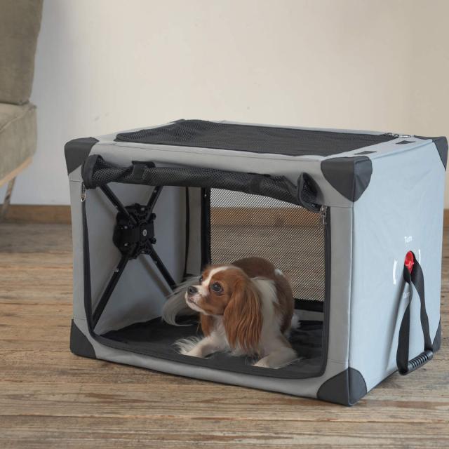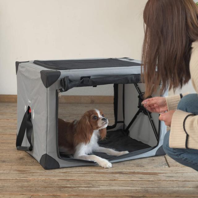 ご自宅では、わんちゃんの留守番中、イタズラ防止やおうちの危険から守ります。ドライブ、アウトドア、旅行先など慣れない場所でも、いつもの寝床がそのまま移動する感覚でリラックスして過ごせます。
