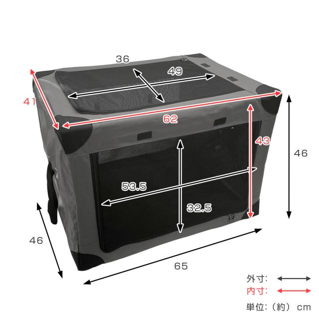 | サイズ | 外寸:約 幅65×奥行46×高さ46(cm) 内寸:約 幅62×奥行41×高さ43(cm) 【収納時】幅67×奥行15×高さ15(cm) |