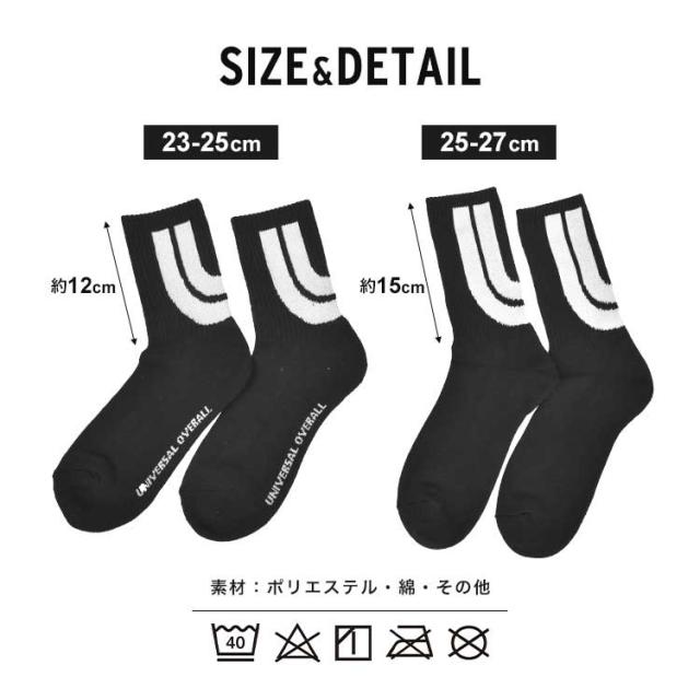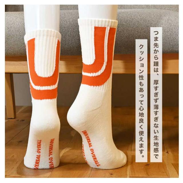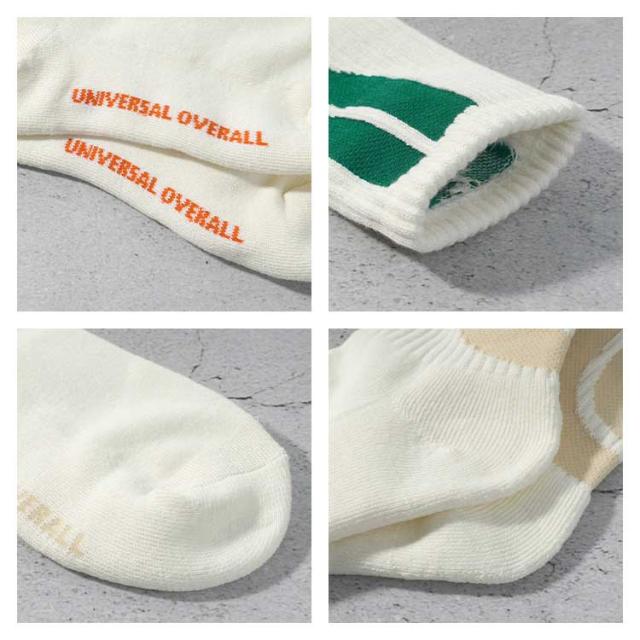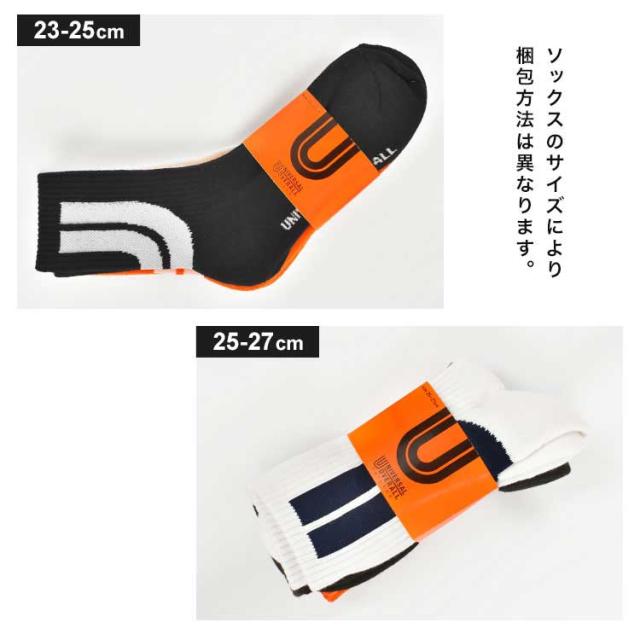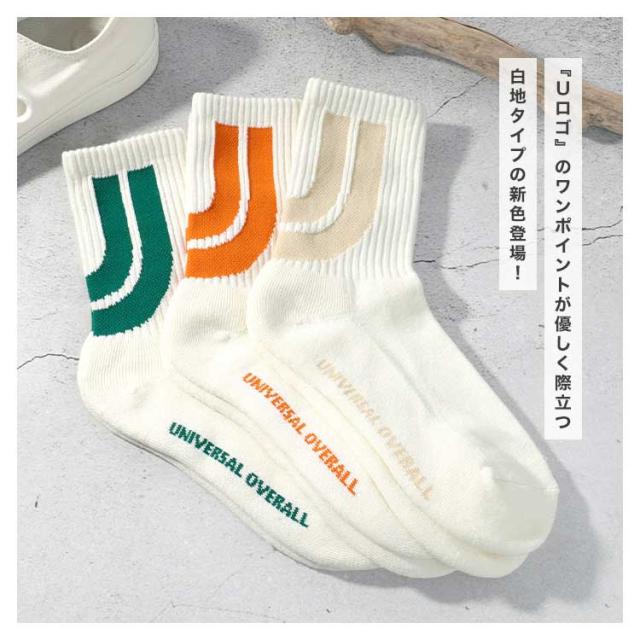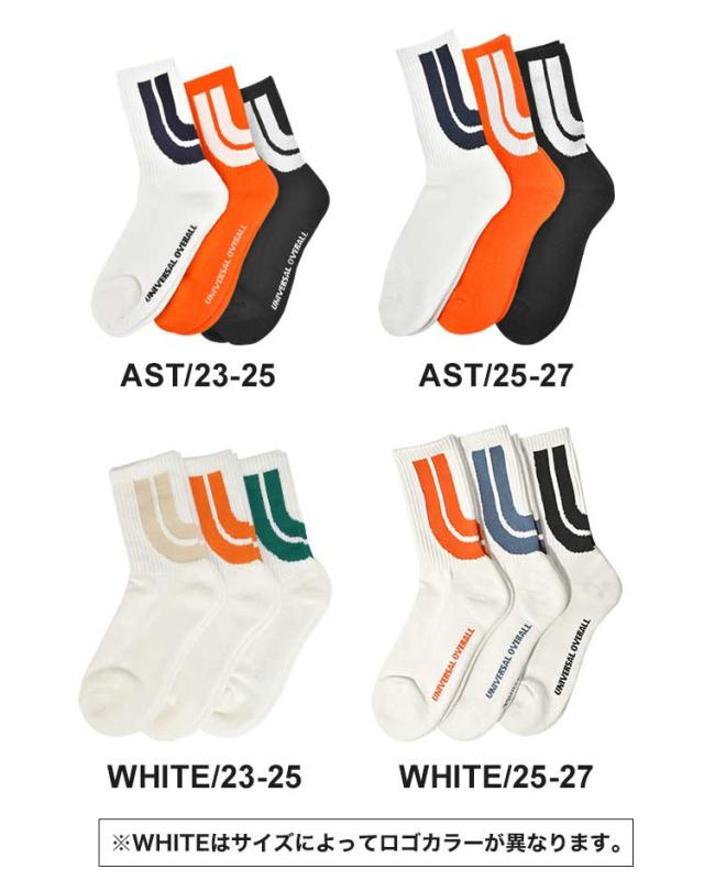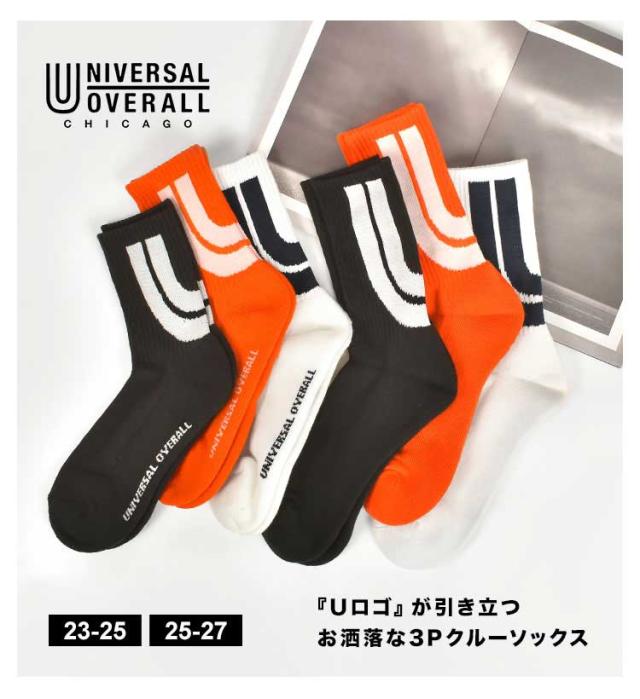 靴下 メンズ レディース 3足組 UNIVERSAL OVERALL ユニバーサルオーバーオール おしゃれ セット クルー ソックス クォーターソックス ブランド ロゴ ライン カラフル 派手 23 24 25 26 27cm 白 黒 オレンジ クルー丈 ショート丈 スニーカーソックス 高校生 大学生 男女兼用