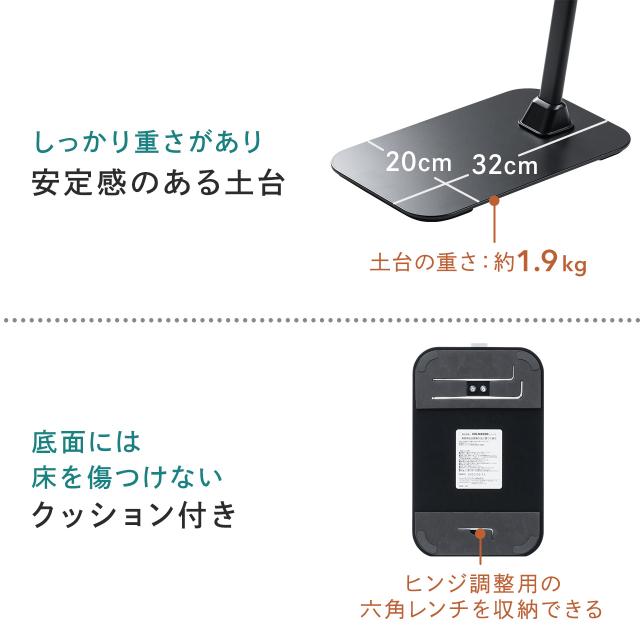 ●安定感のある幅20cm、奥行き32cmの台座で、しっかりとスタンドを支えます。