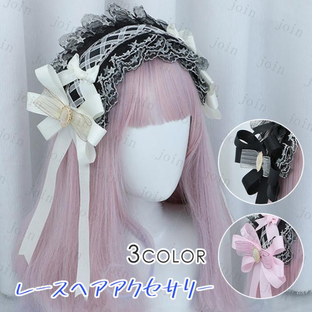ロリータ カチューシャ (h83#) 日本国内当日発送 3color ヘアアクセサリー 髪飾り レース リボン ヘッドドレス メイド ゴスロリ 仮装 幅広 お嬢様 コスプレ 姫系