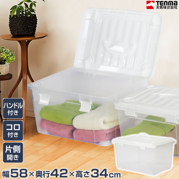 収納ケース PROfix フリーボックス 55 ハンドル付き ホワイト | フタ付き キャスター コロ ハンドル 付き 衣装ケース 衣類 ケース プラスチック 透明 クリアケース 中身が見える 押入れ 押し入れ クローゼット 収納