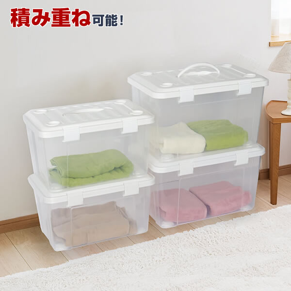 ラクに開閉できるロック構造のプラスチック製収納ボックス。