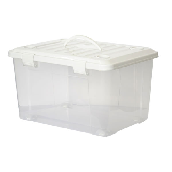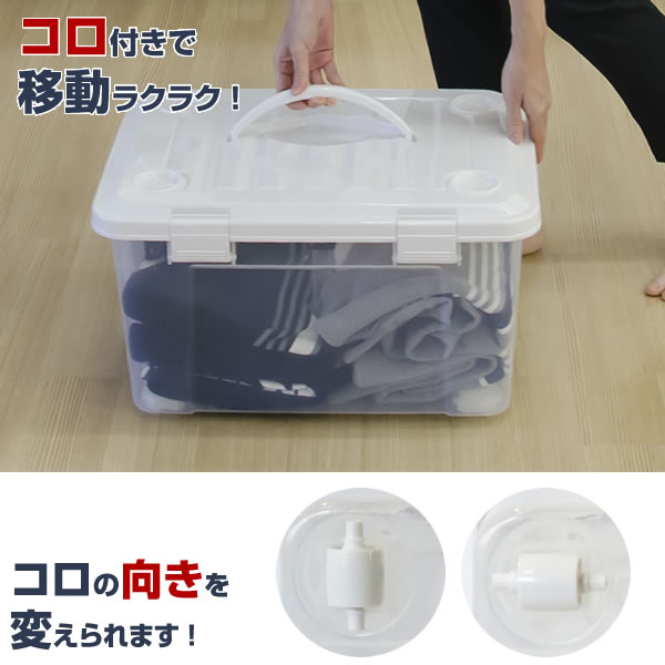 収納ケース PROfix フリーボックス 55 ハンドル付き ホワイト 6個セット | フタ付き キャスター コロ ハンドル 付き 衣装ケース 衣類 ケース プラスチック 透明 クリアケース 中身が見える 押入れ 押し入れ クローゼット 収納