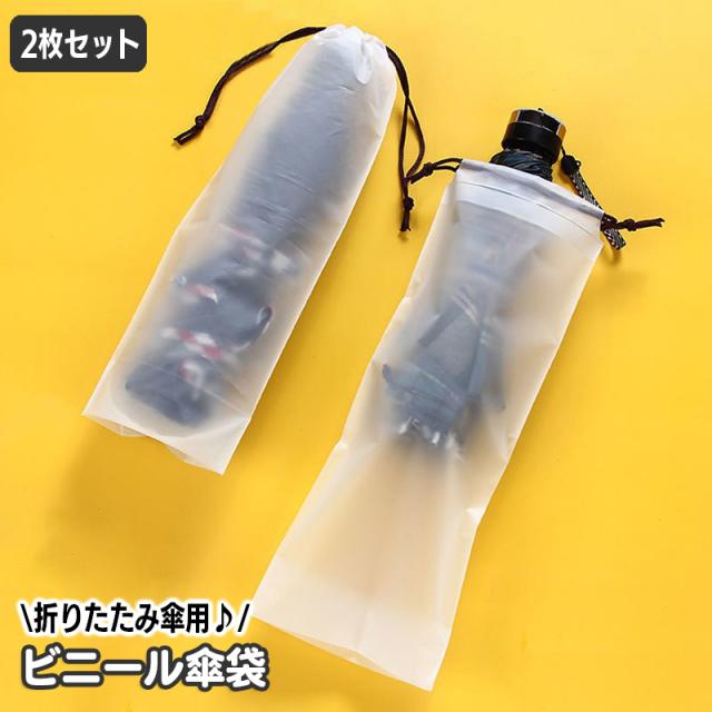 傘袋 折り畳み傘入れ 2枚セット 傘カバー 傘ケース 巾着袋 半透明 折りたたみ傘入れ コンパクト 持ち運び ビニール袋 収納袋