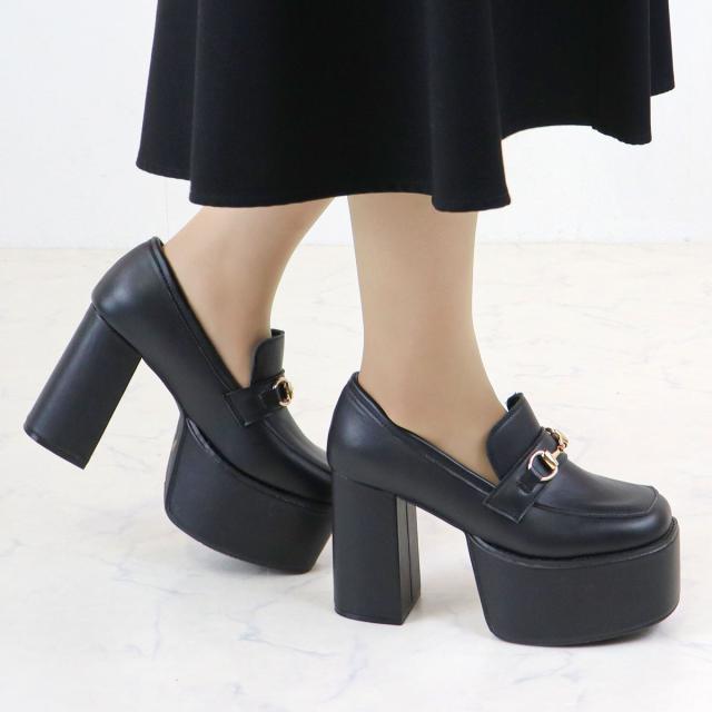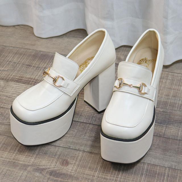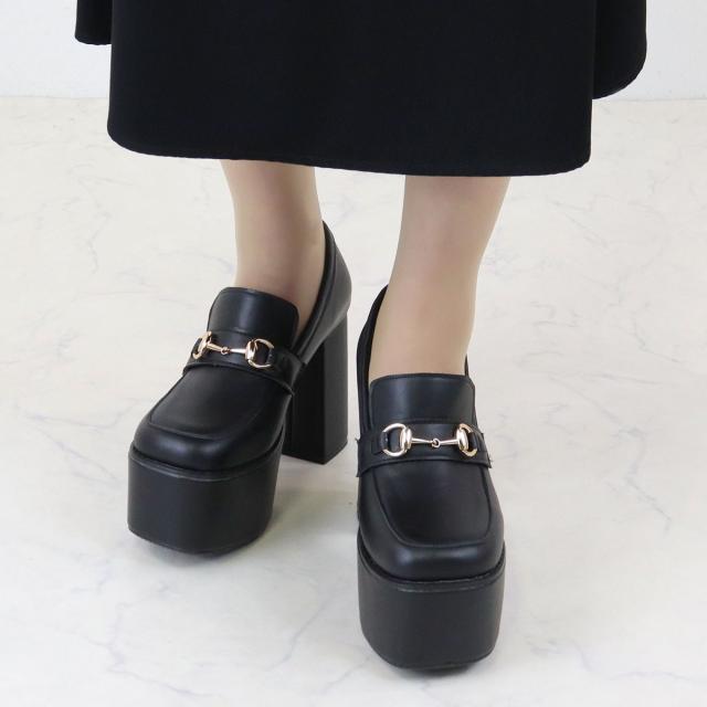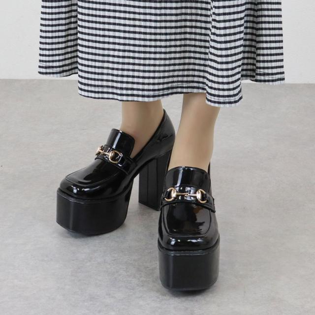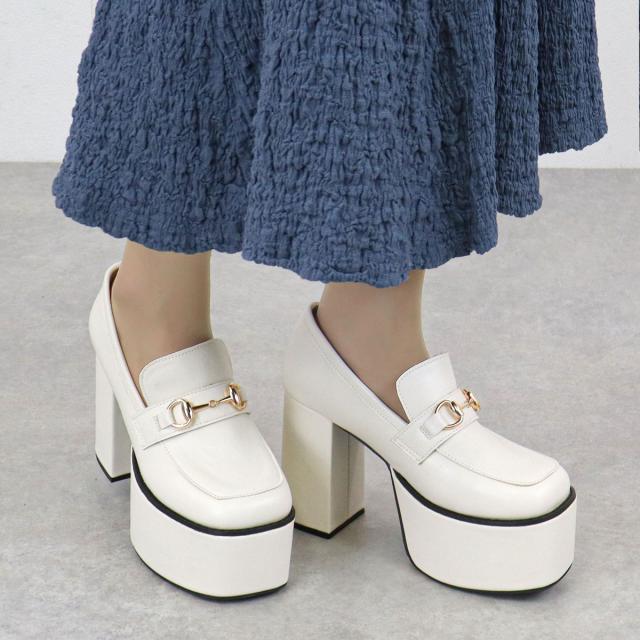 【LOVEHUNTER ラブハンター】の厚底チャンキーヒールスクエアトゥビットローファー。