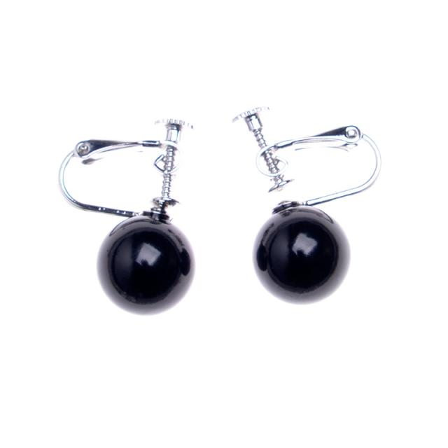 【仕様】天然ジェット12mm珠 金具:真鍮+ロジウムカラーメッキ・ネジバネダブルアクション