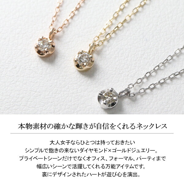 ピンキー&ダイアン 選べる3色 一粒 ダイヤモンド ゴールドネックレス K10 10金 10k ゴールド ネックレス 透かし ハート 天然 ペンダント